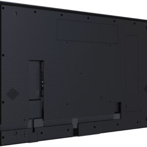 Este modelo está preparado para uso 24/7 y cuenta con diseño sin ventiladores (fanless), una ventaja clara en entornos comerciales: menos mantenimiento, menos acumulación de polvo y menos ruido. Además, incorpora funciones como anti image retention para reducir el riesgo de retención en contenidos estáticos prolongados (logos, menús, listados de precios).