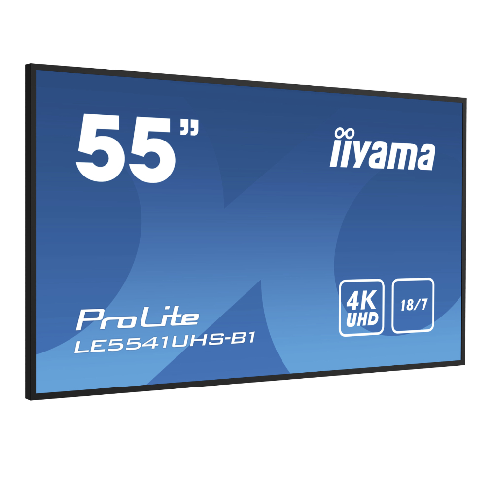 El iiyama ProLite LE5541UHS-B1 es un monitor profesional de 55” (54,6” reales) orientado a proyectos de digital signage interior donde se busca una imagen 4K nítida, una integración limpia en pared y un manejo sencillo mediante entradas HDMI y control por red. Este modelo combina un panel IPS de gran formato con resolución 4K UHD (3840×2160) y un brillo de 350 cd/m², ofreciendo una reproducción de contenido muy detallada para menús digitales, cartelería corporativa, promoción en punto de venta (interior), salas de espera o comunicación interna.