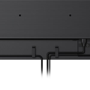 Incluye altavoces integrados para contenidos con sonido (presentaciones, videos promocionales o avisos). El chasis con acabado metálico y la estética “thin bezel” están pensados para un uso comercial continuo y un montaje limpio. También incorpora soluciones prácticas como gestión de cableado mediante clips y accesorios incluidos, algo que se nota cuando buscas un resultado profesional de cara al cliente final.