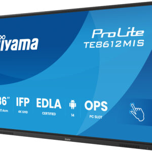 La iiyama ProLite TE8612MIS-B4AG es una pantalla/pizarra interactiva de 86 pulgadas orientada a entornos profesionales donde la colaboración y la facilidad de uso son críticas: centros educativos, academias, universidades, formación corporativa, salas de reuniones, comités de dirección, auditorios y espacios de trabajo híbridos. Su propuesta combina una imagen 4K de gran formato, un táctil rápido y preciso, y un sistema Android moderno con certificación empresarial para que el equipo esté listo desde el primer encendido.