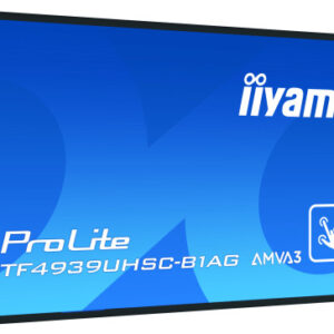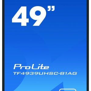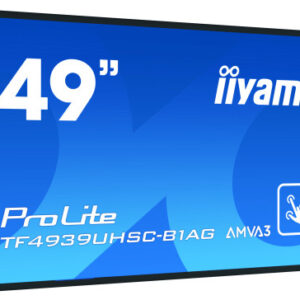 iiyama ProLite TF4939UHSC-B1AG. Diagonal de la pantalla: 124,5 cm (49″), Brillo de pantalla: 500 cd / m², Tipo HD: 4K Ultra HD. Color del producto: Negro, Material de la carcasa: Metal, Grosor del cristal: 3 mm. Tecnología táctil: Multi-touch, Tecnología touchscreen: Sistema capacitivo proyectado, Tipo de pantalla táctil: Multi-usuario. Versión HDMI: 1.4/2.0. Interfaz de panel de montaje: 400 x 200 mm, Colocación soportada: Horizontal/Vertical