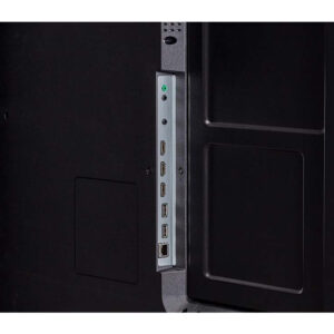 La conectividad está preparada para integraciones habituales en señalización digital: dispone de 3 entradas HDMI (con compatibilidad HDCP 2.2/1.4), 2 puertos USB 2.0, LAN RJ45 y control RS-232C (entrada/salida). Esta combinación facilita conectar fuentes 4K, cargar contenidos localmente y gestionar el equipo de forma remota. En audio, incluye salida de audio y altavoces integrados 10W×2 para refuerzo básico en comunicaciones con audio puntual.