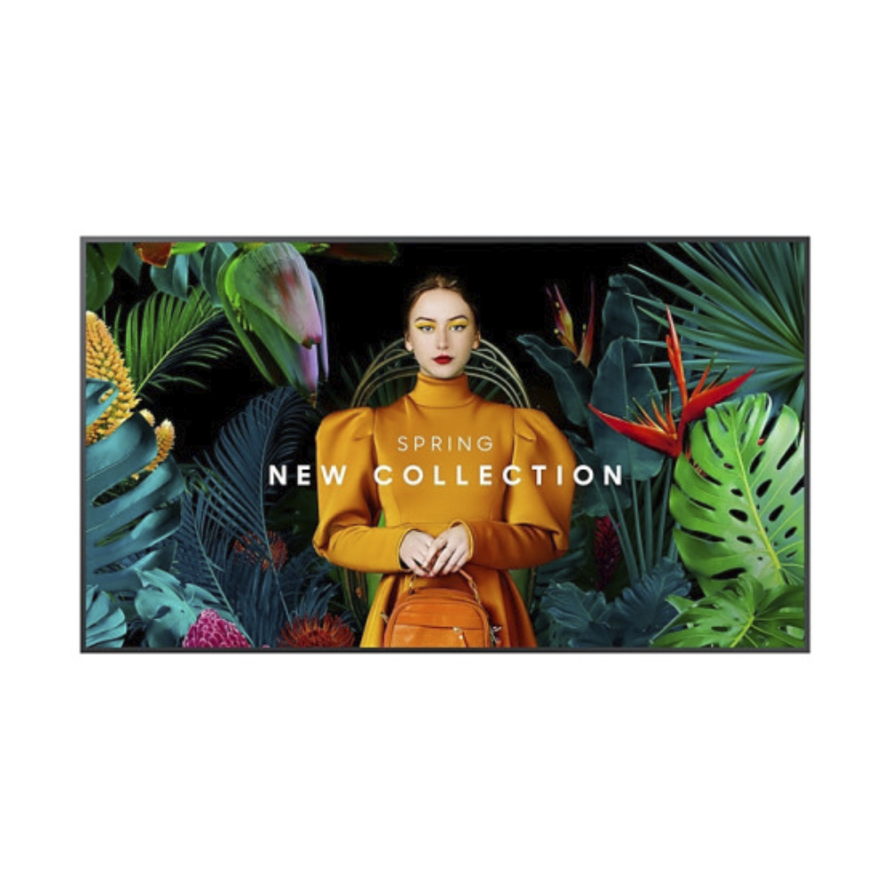 Su diseño uniforme y el acabado en color negro facilitan la integración en entornos corporativos y comerciales. La pantalla está pensada para ofrecer una apariencia limpia, manteniendo el protagonismo en el contenido mostrado y no en el equipo instalado.