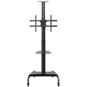 AISENS – Soporte de Suelo ECO con Ruedas y Manivela, Bandeja para DVD y Soporte de Cámara para Monitor/TV 50Kg de 37-70, Negro
