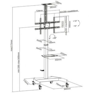 - Rango de ajuste para la altura del soporte TV: ajustable entre 1200 y 1600mm