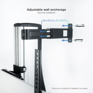- Anclaje fijo en el suelo, con opción de anclaje a pared (220-265 mm)