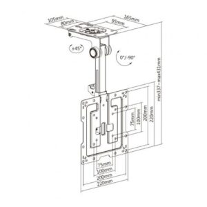 - Soporte de techo giratorio, plegable para monitor/TV de 19”-43”