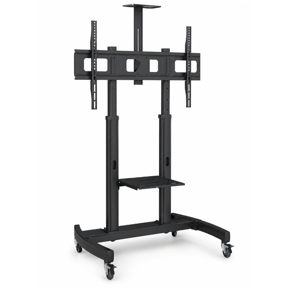 En proyectos de digital signage, puede emplearse para mostrar promociones, señalética, información corporativa, vídeos, menús digitales, turnos o comunicaciones internas. Su compatibilidad con pantallas de hasta 100 pulgadas y su capacidad de carga de 100 kg lo convierten en una opción robusta para instalaciones profesionales de gran formato.
