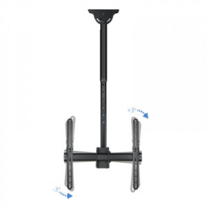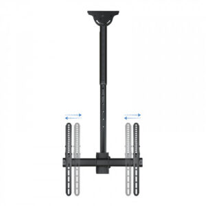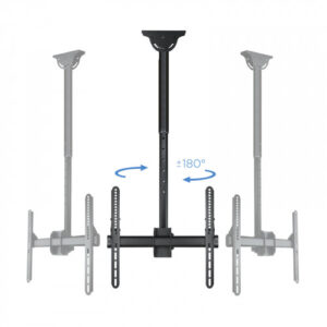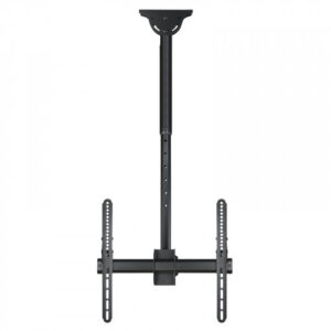 – Soporte de techo giratorio, inclinable y extensible para TV/Monitor de 32″ a 55″n- VESA máxima: 400x400n- Carga máxima: 50 kgn- Distancia entre techo y pantalla: ajustable entre 1060 y 1560 mmn- Inclinación: entre -25º y +0ºn- Angulo de giro: 360ºn- Angulo de nivelación: -3º y +3ºn- Pantallas soportadas: 10” a 32”nnCaracterísticas y EstándaresnIndicado para pantallas de 32″ a 55″nCon una carga máxima de 50kg. usted podrá rotar su pantalla un ángulo de 360º, que le permitirá un ajuste óptimo de la visualizaciónnAltura al techo ajustable entre 1060 mm y 1560 mm.nnFácil y Rápido.nIncluye manual de instrucciones y kit de montaje para que en unos minutos pueda disfrutar de su TV o monitor en el lugar elegido.nnSu Elección.nCon 10 años de garantía y fabricado en metal de alta resistencia está disponible en negro metalizado. Siempre con la calidad de los productos Tooq y al mejor precio.